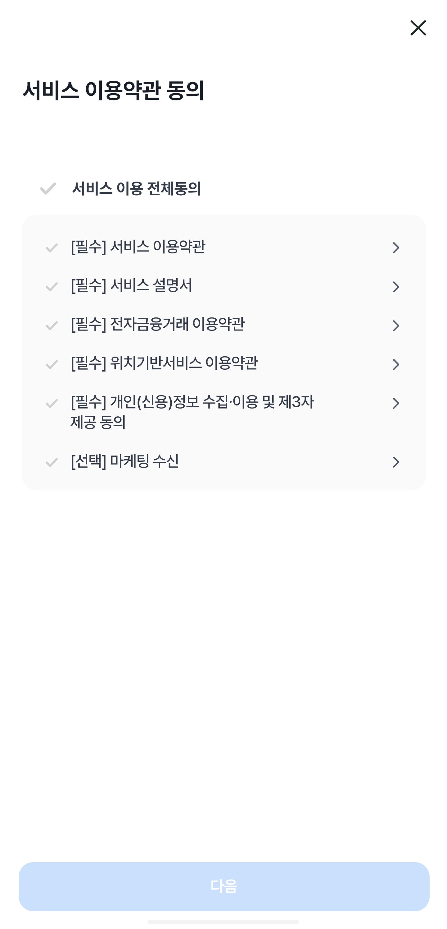 인증 및 동의할 것들 동의하고 넘어가면,