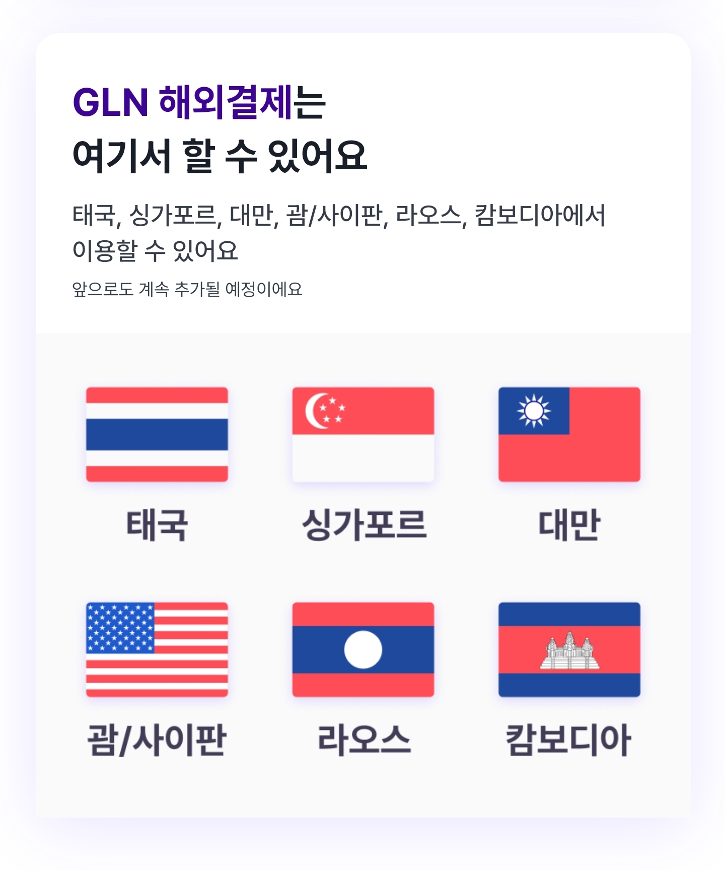 전세계 어디서나 프리패스, GLN 더 이상 여행에 환전도, 현금도, 카드도 필요 없어요 해외에서도 낮은 환율과 수수료로 간편하게!
