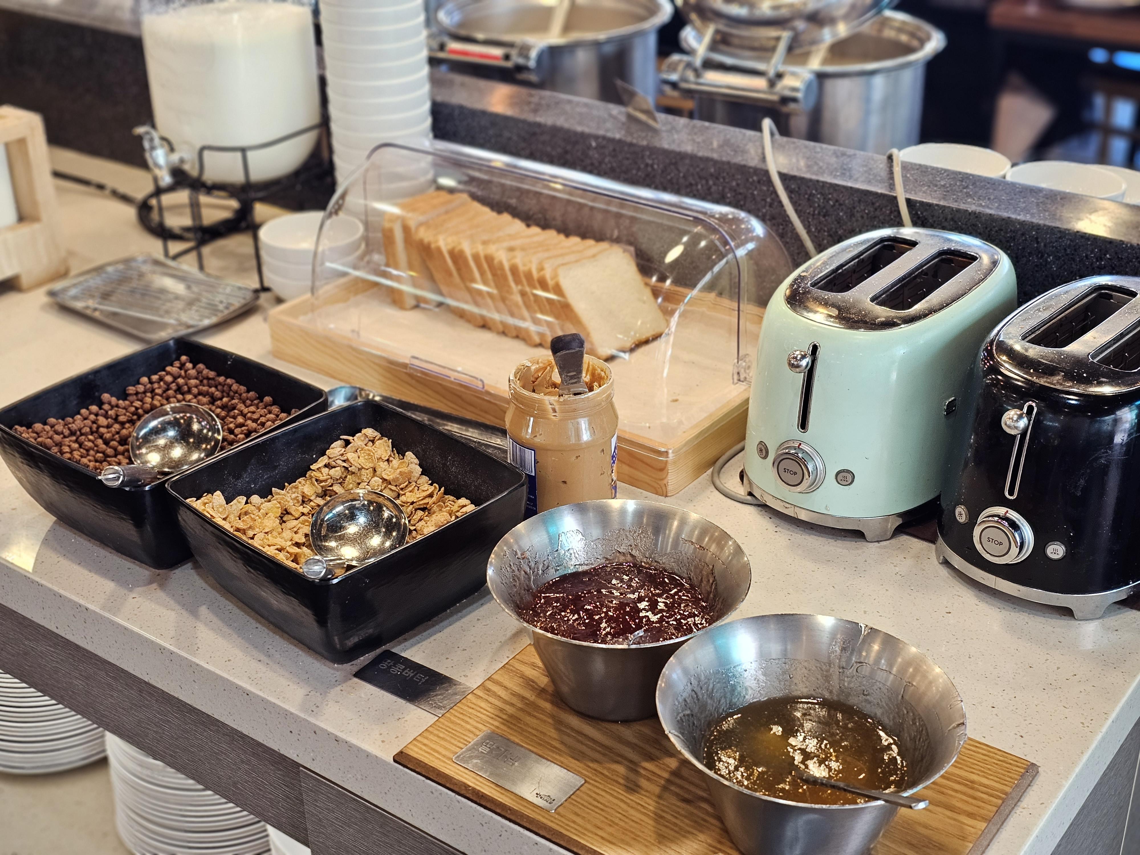 토스트와 시리얼 및 우유