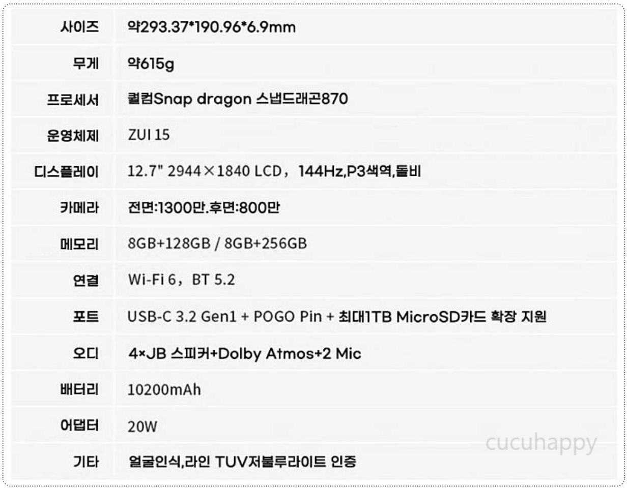 가성비 태블릿에서 찾아보기 어려운 스펙이다.