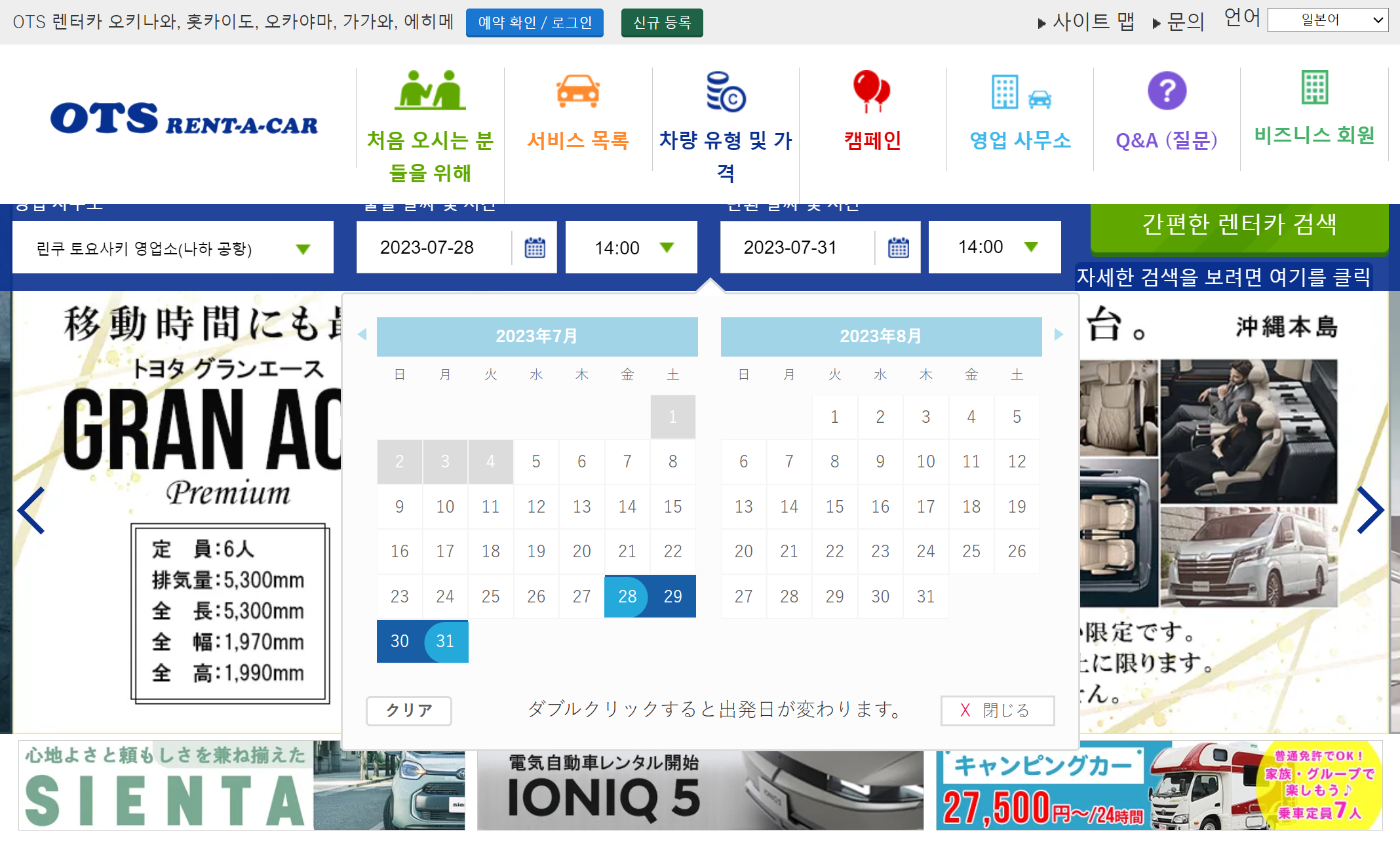 반면 일본어 웹페이지를 이용할 경우 렌트 가능한 모든 차량을 보여주므로, 원하는 일정을 맞출 가능성이 높다.