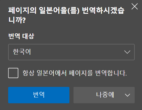 브라우저에서 제공하는 번역기 확장 프로그램을 사용했다. (크롬/엣지 등 기본으로 있는 듯..?)